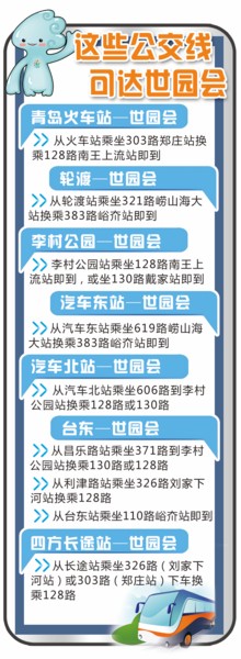 本報(bào)訊 2014青島世園會(huì)選址在李滄區(qū)百果山森林公園。目前,周邊主要有128路、130路、383路等公交線(xiàn),從市區(qū)多個(gè)地方前往主場(chǎng)址無(wú)法直達(dá)需要換乘。為此,公交集團(tuán)于昨日發(fā)布了世園會(huì)公交換乘指南,以青島火車(chē)站、青島長(zhǎng)途汽車(chē)站、輪渡、臺(tái)東、李村公園等客流密集地為起始點(diǎn),設(shè)計(jì)了多條換乘路線(xiàn),方便市民和游客前往世園會(huì)觀(guān)光游覽。